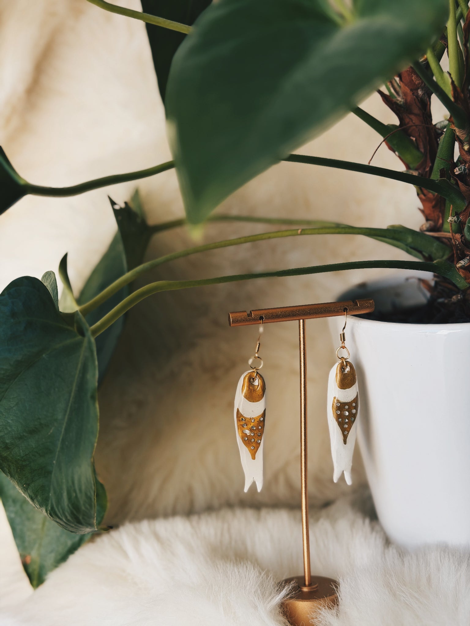 Each piece is one of a kind and made by hand with polymer clay. The earrings are nickel free and lightweight. The earring are 18k gold plated and secured by clay to ensure the stability of the post.
